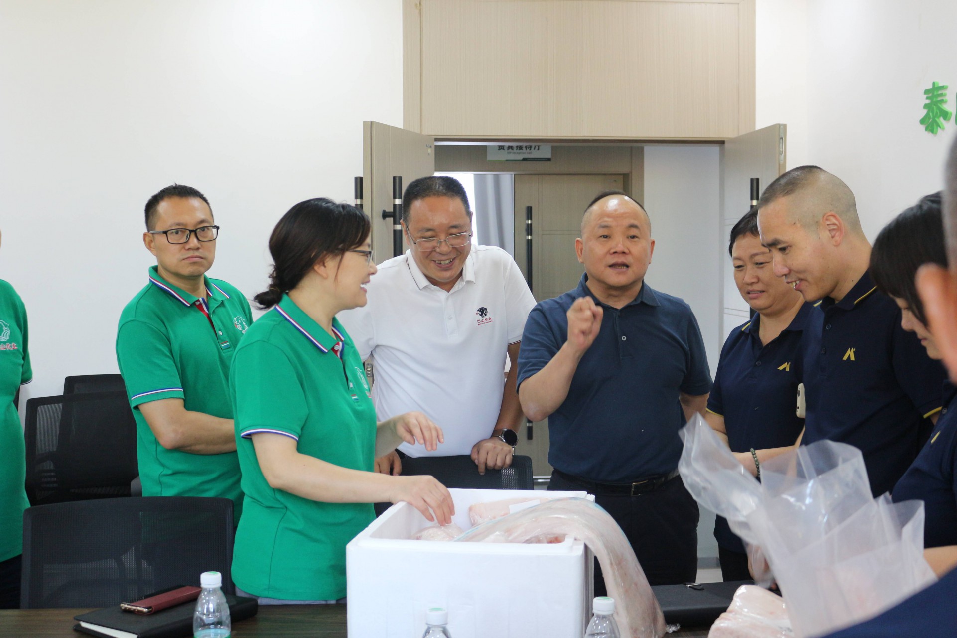 2022年8月17日眉州東坡集團(tuán)董事長王剛率公司副總陸陽,王家渡食品公司研發(fā)部總監(jiān)劉國民,王家渡食品公司供應(yīng)鏈副總監(jiān)王艷梅、王家渡食品公司采購部經(jīng)理冷燕、集團(tuán)供應(yīng)鏈采購經(jīng)理何正昔、四川區(qū)域采購經(jīng)理段永寧,董事長助理蘭寧來我公司參觀考察,我公司董事長兼總經(jīng)理張育賢率副總劉建春,生產(chǎn)負(fù)責(zé)人譚欽,質(zhì)量首席官秦芬,養(yǎng)殖總經(jīng)理廖坤,采購經(jīng)理秦兵等高管接待并詳細(xì)介紹了公司發(fā)展歷程及發(fā)展規(guī)劃.