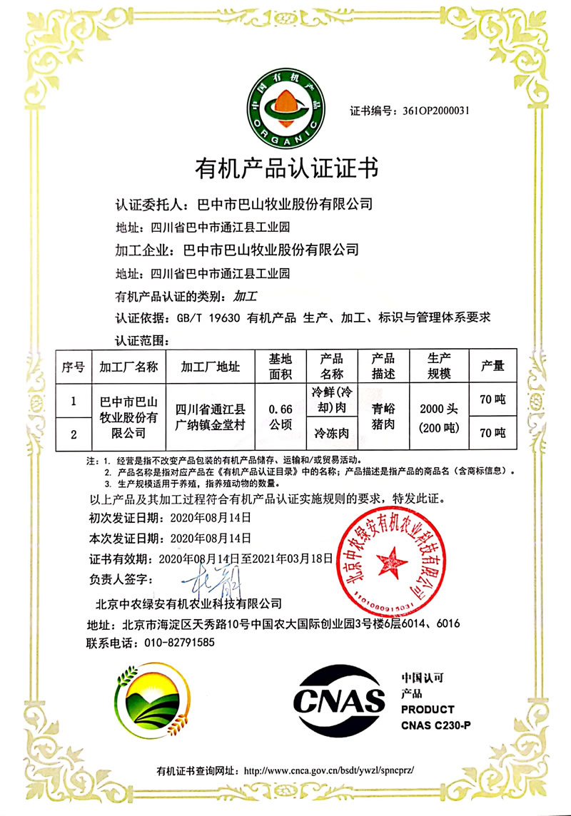 有機認證(加工)
